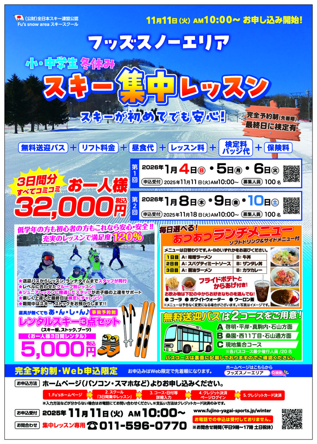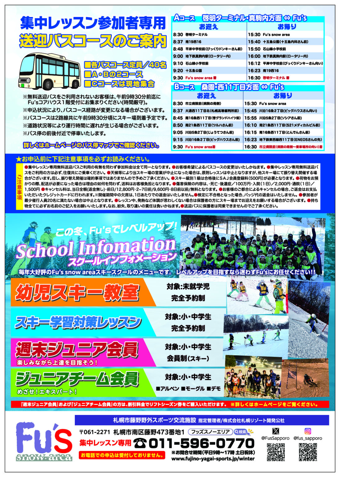| 料金 | 32,000円 バス代・リフト代・昼食代・レッスン料・検定料+バッジ代・保険料含む