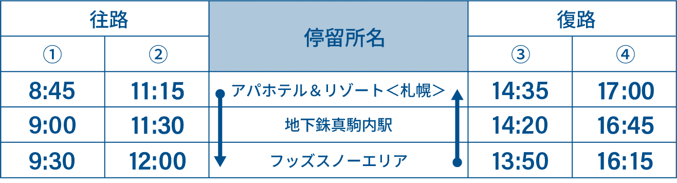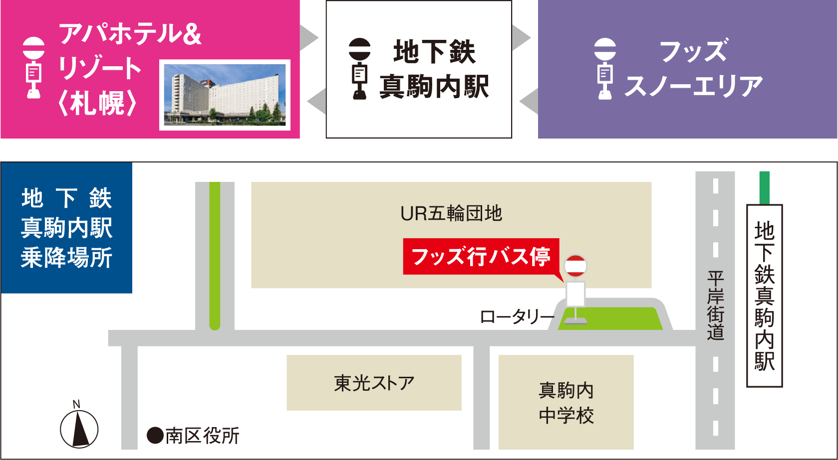 ・運行経路:アパホテル&リゾート<札幌>~真駒内駅~フッズスノーエリア