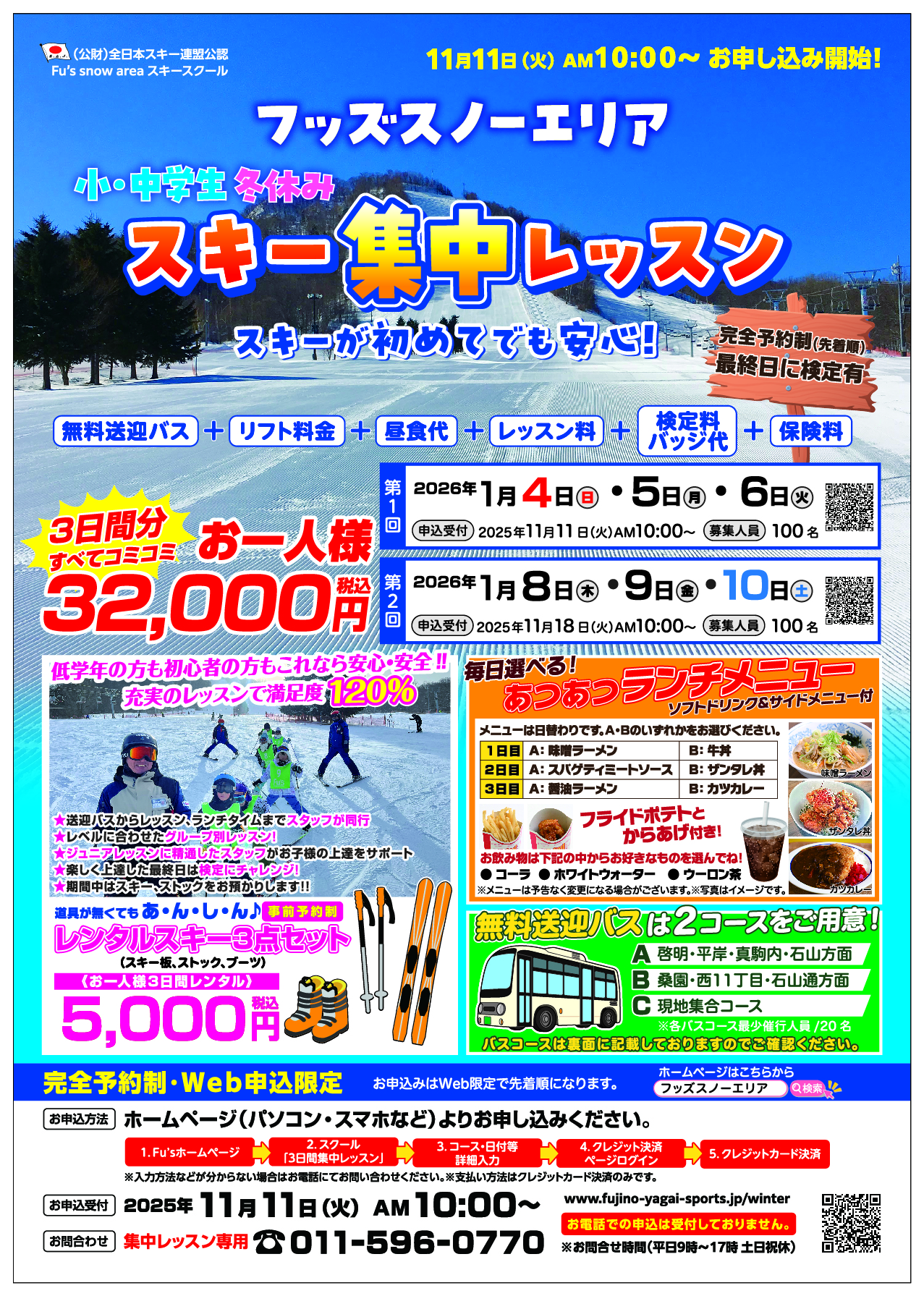 25-26⛷小(中)学生のための、冬休みスキー集中レッスン開催のお知らせ⛷